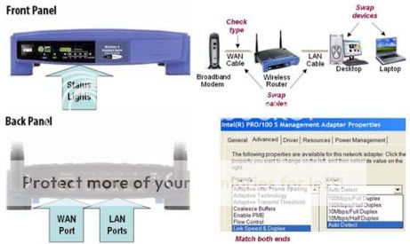 - Nếu các đèn trạng thái không sáng, kết nối một thiết bị khác giống như laptop với cổng WAN hoặc cổng LAN bị ảnh hưởng. Nếu trạng thái thay đổi thì điều đó có nghĩa thiết bị mà bạn vừa thay thế có thể bị lỗi trong việc tự động điều đình liên kết. Kiểm tra cấu hình cho các cổng trên cả hai đầu và cấu hình lại sao cho phù hợp tốc độ cổng và chế độ duplex.