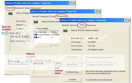 - Với bất cứ kiểu adapter Wi-Fi nào, nếu kết nối không được hiển thị trong Network Connections hoặc không được kích hoạt, hãy mở panel Properties của adapter, kích Configure, bảo đảm thiết bị được kích hoạt, không có xung đột về tài nguyên và kiểm tra các nâng cấp driver nếu có.